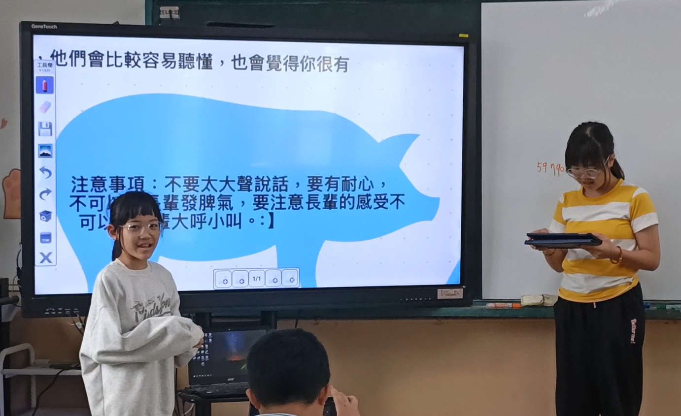 We Are 公民素養課程:實踐永續行動「健康銀活・田在心頭」 服務學習課程期間:113 年 9 月 ~ 114 年 6 月 團隊名稱:田頭國小五年級專業帶領人:陳易立SDG3「健康與福祉」孩子們在家裡長輩的身上發現田頭社區進入「超高齡社區」的隱憂。透過問卷調查得知長者有陪伴需求,進一步設計出與社區共餐單位合作進行長者的陪伴活動。透過這樣的學習,不只是對「健康與福祉」的回應,更是跨世代對話的開始。 發現什麼問題 觀察到自己的阿公、阿嬤年紀大了,身體活動變得比較遲鈍,同時發現彰化縣竹塘鄉田頭村銀髮族越來越多。透過資料查詢發現,從民國106年開始,田頭社區進入「超高齡社區」,必須關注長者日常需求。 想要解決什麼問題 關注長者的日常作息。滿足長者「陪伴」的需求,提升長者心理素養。 做了什麼行動 利用問卷調查得知長者有陪伴需求。探討陪伴長者的方式與注意事項。聯繫社區共餐單位,進行陪伴活動。 訪問社區發展協會理事長,理解社區銀髮族長輩事務。 各組討論發表服務銀髮族長輩相關事項 演練服務過程,熟悉服務銀髮族長輩相關事務。 前往社區活動中心,帶領銀髮族長輩進行遊戲。 前往社區活動中心,與銀髮族長輩一起玩桌遊(五子棋)。 前往社區活動中心,與銀髮族長輩一起玩桌遊(推推棋)。 帶領銀髮族長輩帶動跳,活動筋骨身體好。 與銀髮族長輩共餐,溫馨共餐祖孫情。 與田頭社區銀髮族共餐長輩合照