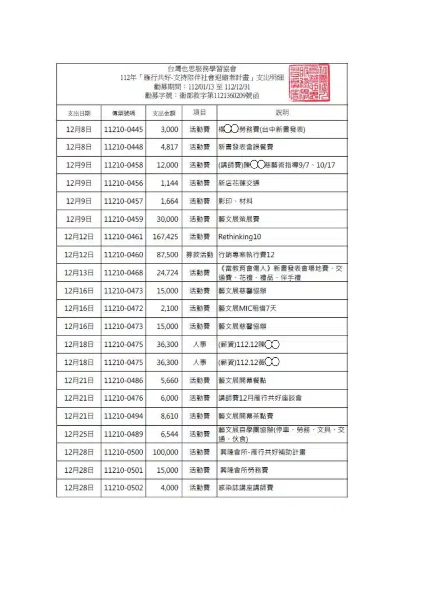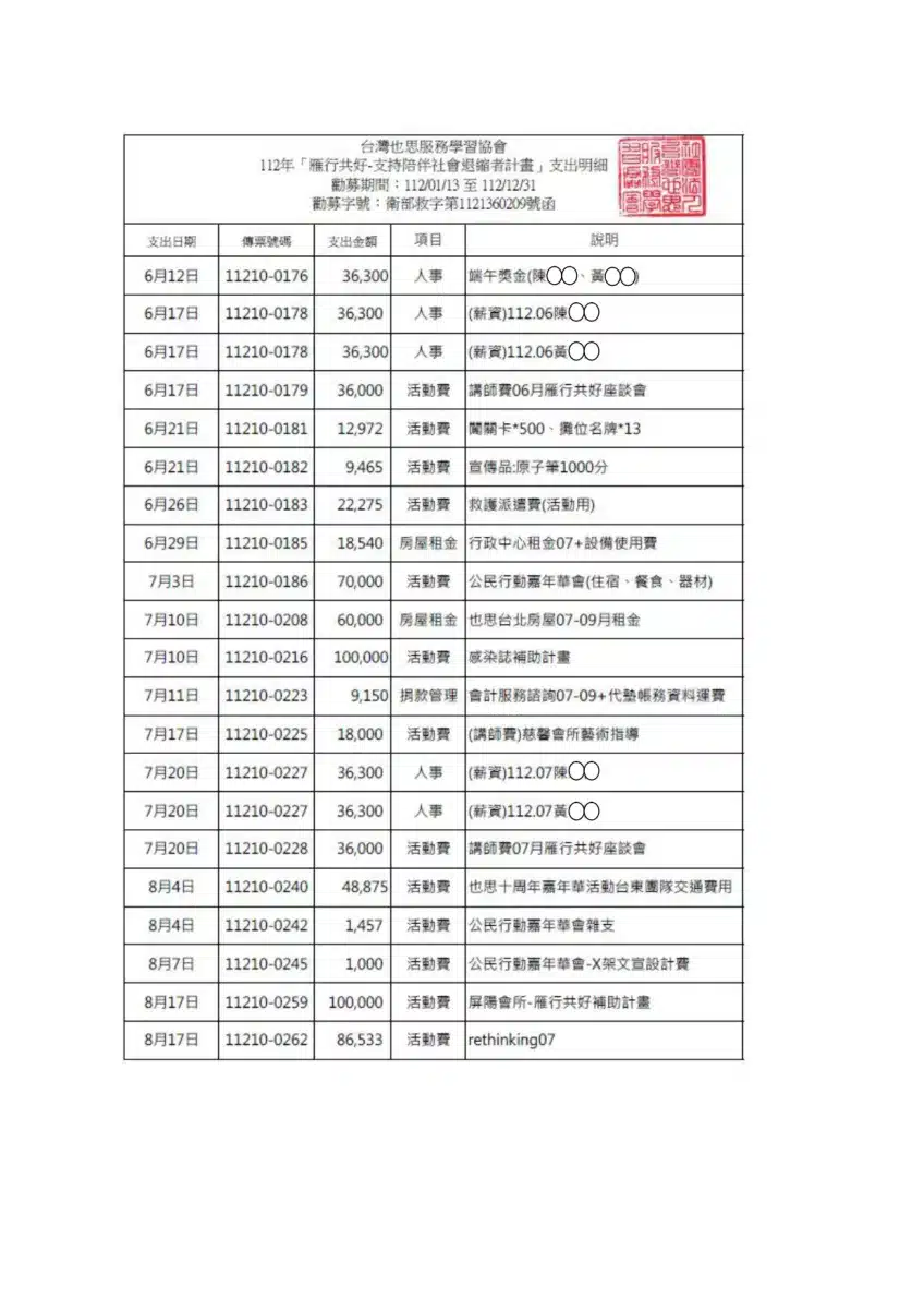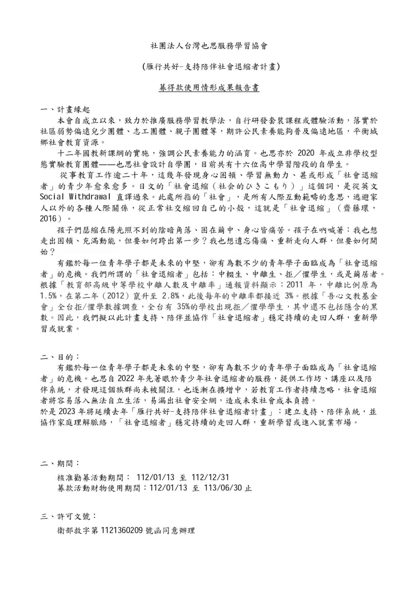 112募得款使用情形成果報告書
