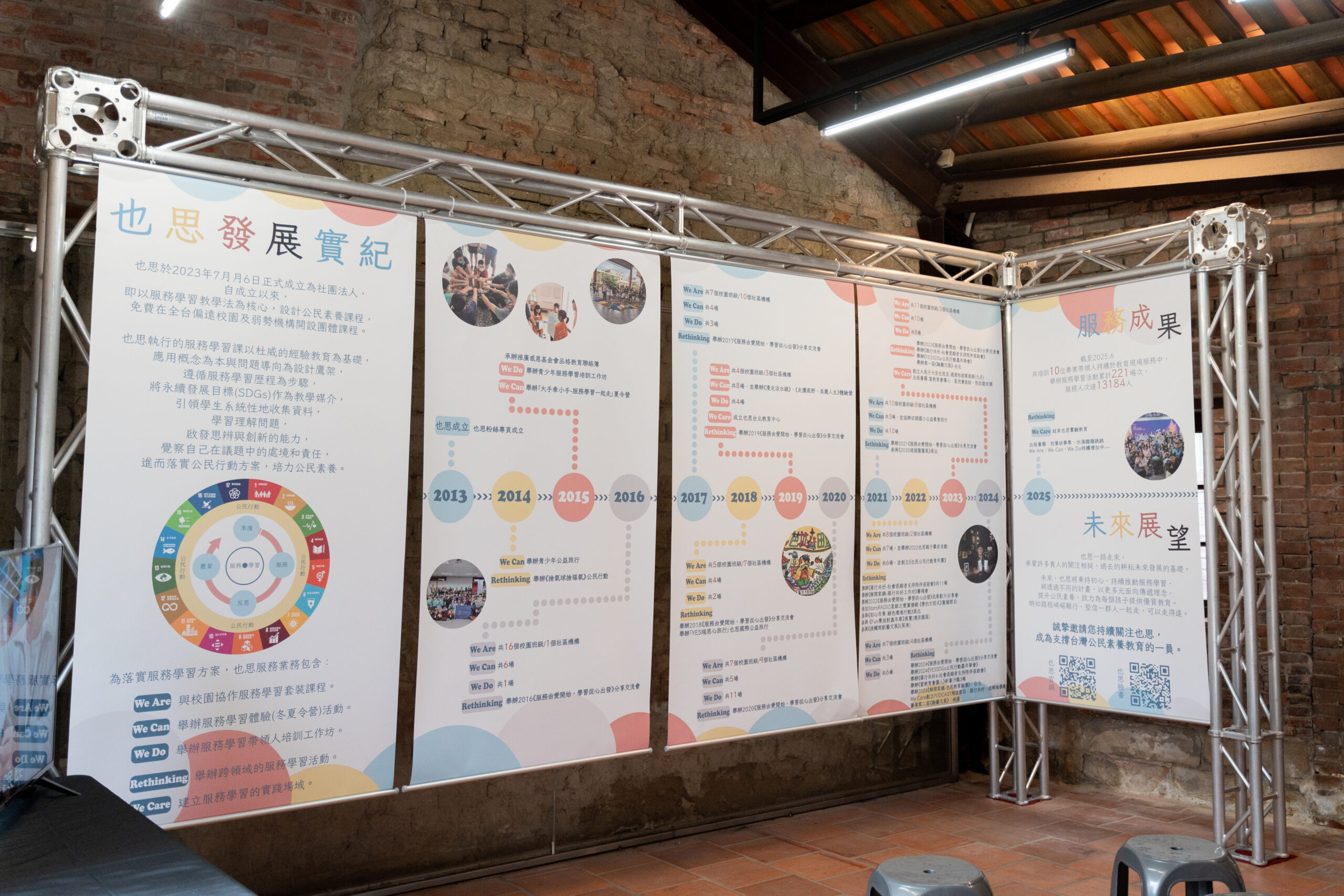 有效益的公民素養課程設計必須扣合在地永續發展目標需求,並依循服務學習歷程「準備、服務、反思、慶賀」四個階段,並以學生為本客製化設計課程或活動。在慶賀階段,也思每年舉辦公民行動嘉年華,邀請各地區與也思協同合作單位的師生共同參與,從分享成果、反思覺察與感恩互惠,進而創新公民行動方案,朝向讓世界更美麗的願景。